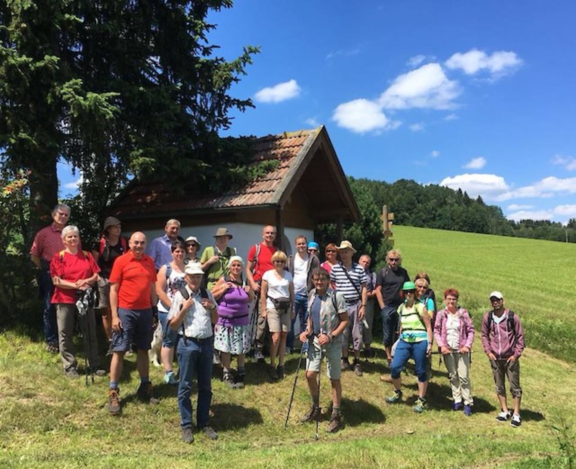 Die 26-köpfige Wandergruppe traf sich am Bahnhof in Furth im Wald, von wo aus sie mit der SUMAVA-Wanderbuslinie 590 nach Neukirchen b. hl. Blut fuhr. Hier wurden sie von Josef Baumann, seit langem Mitglied der Grünen und wohnhaft in Neukirchen, erwartet und mit leckeren Kirschen begrüßt. Im Jahr 2008 wurde die erste grenzüberschreitende Wanderbuslinie zwischen Arnbruck und Hamry eröffnet. Heute gibt es bereits drei Linien, die in der Zeit vom 15. Mai bis 31. Oktober von Montag bis Freitag und zusätzlich vom 1. Juli bis 30. September auch sonntags innerhalb des bayerisch-böhmischen Grenzraums verkehren. Finanziert werden die Linien durch den Freistaat Bayern und den Bezirk Pilsen.