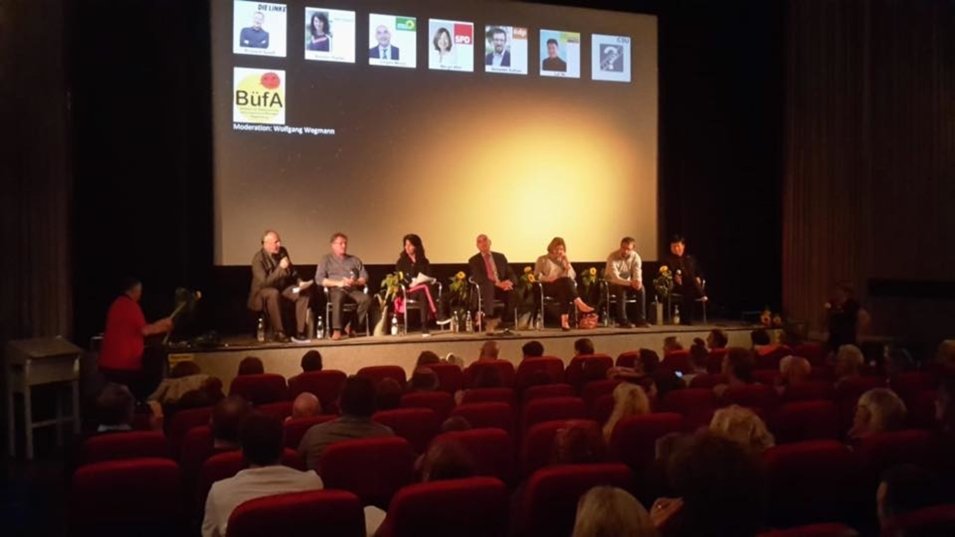 Auf Einladung der Büfa (Bündnis für Atomausstieg und erneuerbare Energien) Regensburg diskutierte Jürgen Mistol mit weiteren Regensburger Landtagskandidat*innen im Reginakino im Anschluss an die Vorstellung des Kinofilms „Wackersdorf“ über die Energiepolitik im aktuellen Zeitalter und das Polizeiaufgabengesetz (PAG). Die Moderation übernahm Wolfgang Wegmann. Zunächst gab es vier kurze Fragerunden zu den Themen Hambacher Forst und Stromtrassen, zur Frage, ob Erneuerbare Energien und Klimaschutz in die Bayerische Verfassung geschrieben werden sollen, sowie zum Begriff der „drohenden Gefahr“. Auf diese Fragen durften die Kandidat*innen nur mit ja oder nein antworten. Alle Diskutant*innen lehnten die Abholzung des Hambacher Forsts ab. Bei den weiteren Fragerunden gingen die Meinungen aber im Detail eher auseinander. Mistol sprach sich beim Thema Stromtrassen für eine konzernunabhängige Bedarfsplanung aus und plädierte dafür, die Förderung der Erneuerbaren Energien und den Klimaschutz in die bayerische Verfassung aufzunehmen. Eine Änderung des PAG mit dem umstrittenen Begriff der „drohenden Gefahr“ hielten alle Diskutant*innen auf dem Podium für erforderlich. Hier verwies Mistol darauf, dass die grüne Landtagsfraktion Klage vor dem Bayerischen Verfassungsgerichtshof gegen das PAG eingereicht hatte. Danach gab es zwei weitere Runden, in denen die Kandidat*innen jeweils zwei Minuten für ihre Antwort hatten. Zur Frage Klimaschutz vor Wirtschaftlichkeit betonte Mistol, dass zwischen Umwelt und Wirtschaft für die Grünen kein “oder“ gehöre. Man brauche die Wirtschaft für notwendige Innovationen die auch dem Umweltschutz zugutekämen. Es könne nicht sein, dass die Autoindustrie im Dieselskandal nicht für die entstandenen Schäden geradestehe. Politik müsse die richtigen Rahmenbedingungen setzen, damit die Autos der Zukunft auch in Bayern gebaut würden. Zur abschließenden Frage nach der Förderung der Erneuerbaren Energien forderte Mistol, die 10H-Regelung abzuschaffen, damit die Windkraft wieder in Schwung komme. Die Energiewende schaffe wichtige Arbeitsplätze in der Oberpfalz. Ein entsprechender Gesetzentwurf würde bei ihm „100% Erneuerbare Energien-Klimaschutzgesetz“ lauten. Zum Schluss der Diskussion warb Moderator Wegmann noch für das Volksbegehren „Klimaschutz in die bayerische Verfassung“.