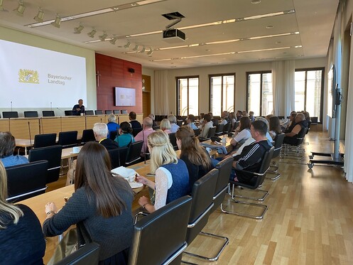 Bayerischen Landtag besucht. Noch kurz vor der Landtagswahl informierten sich die Besucher*innen über die Arbeitsweise des Bayerischen Landtags, über aktuelle Themen und politische Perspektiven für die neue Legislaturperiode des Bayerischen Landtags. In der Diskussionsrunde tauschten sich die Besucher*innen mit Markus Büchler, MdL, er vertrat Jürgen Mistol krankheitsbedingt, über die Verfasstheit der Demokratie in Bayern, die Verkehrspolitik, die Partizipation der Bürger*innen und viele weiteren Themen aus. Besonderes Interesse hatten die Beamt*innen an der Erarbeitung und Beschlussfassung von Gesetzen. Der Bayerische Landtag öffnete ein letztes Mal in dieser Legislaturperiode seine Türen und die Besucher*innen konnten nicht nur das hohe Haus besichtigen, sondern reisen auch mit vielen persönlichen Einblicken wieder nach Regensburg zurück.