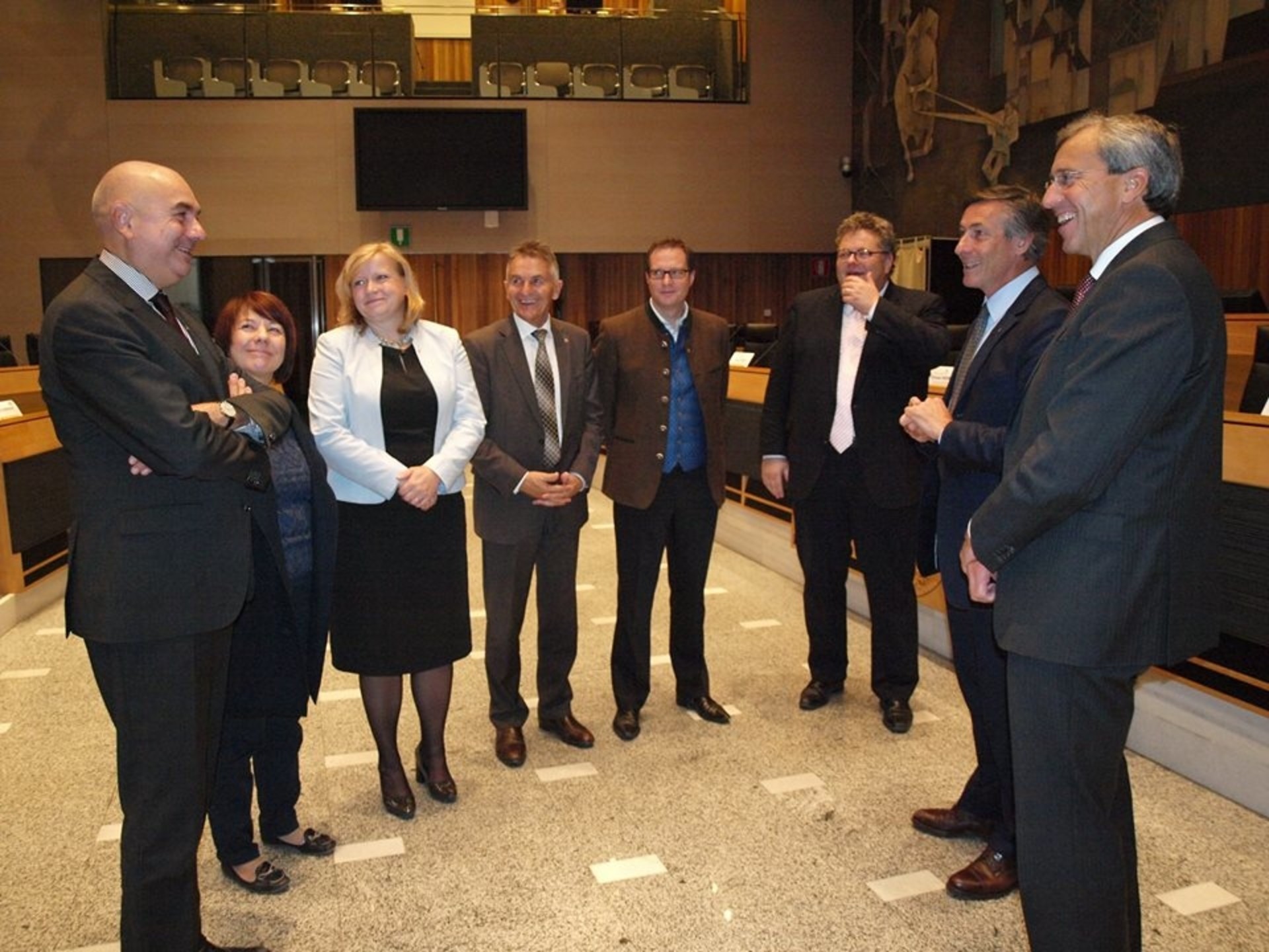 Die großen europäischen Themen, wie die Flüchtlingsfrage und die Vertrauenskrise der EU, wurden bei einem Treffen mit den Vertretern der Fraktionen im Südtiroler Landtag besprochen. Deutlich wurde, dass der Europa-Gedanke in Südtirol noch sehr stark ist, die Entwicklungschancen sieht man vor allem in einem gemeinsamen Europa der Regionen. Denn ohne ein intensiveres Miteinander in Europa werden viele Probleme zukünftig nicht mehr zu lösen sein. Bei der Diskussion zur Europapolitik konnten die Ausschussmitglieder viele Gemeinsamkeiten mit den Südtiroler Kollegen feststellen: Ohne Fortführung des europäischen Einigungsprozesses wird das Zusammenleben in unserer Region schwer zu organisieren sein.