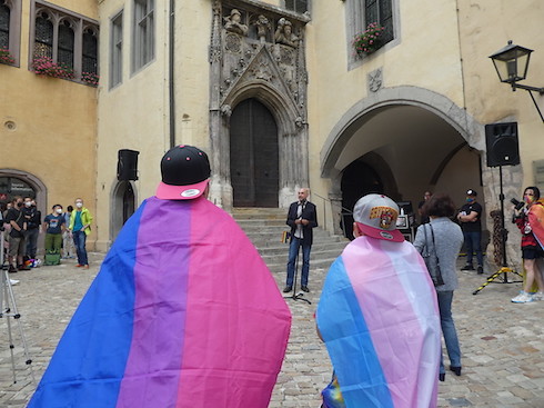 Nicole Hölzl von Equality Oberpfalz, einem Verein, der sich für die Stärkung von Toleranz und Akzeptanz queerer Menschen in der Provinz einsetzt, betonte, dass die in Großstädten vorhandenen Beratungsstellen und Treffpunkte, und damit auch die öffentliche Sichtbarkeit der “queeren Community” in ländlichen Regionen gänzlich fehlten. “Gerade deshalb haben wir Equality Oberpfalz gegründet”.