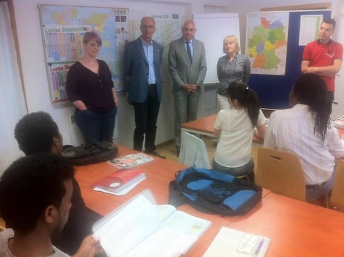 Der bürokratische Aufwand für einen Integrationskurs ist immens. Bei einem Besuch Jürgen Mistols mit den grünen Kreisvorsitzenden Andrea Leitermann und Michael Doblinger berichteten die Mitarbeiter der Volkshochschule Cham von 586 Formularen. Viele dieser Formulare bedeuten überflüssige Arbeit für Personal und Kursteilnehmer. Die trotzdem erfolgreiche Integration bei der VHS Cham ist dem Engagement der Angestellten zu verdanken, die ihre Schüler persönlich kennen und ihre Kurse mit den Fahrplänen des ÖPNV abstimmen, um die Abschlussquoten hoch zu halten.