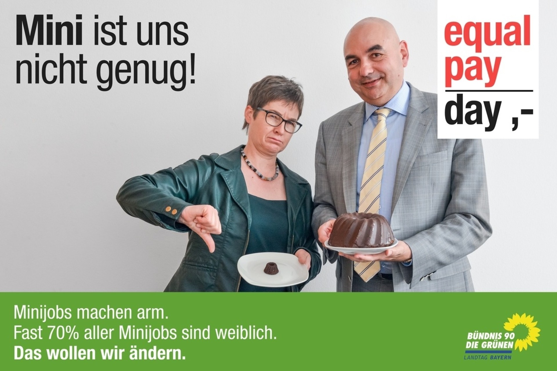 Grüne Fotoaktion weist auf Einkommensunterschiede zwischen Frauen und Männern hin München.