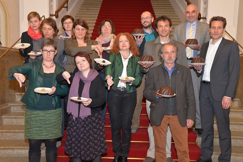 Ein süßes Häppchen für die Frauen, den großen Kuchen für die Männer? Was auf den ersten Blick schreiend ungerecht wirkt, ist auf dem bayerischen Arbeitsmarkt leider nach wie vor Realität. Arbeitnehmerinnen müssen nicht nur mit Einkommensunterschieden von 25 Prozent leben, sondern werden nach der Geburt eines Kindes zunehmend in prekäre Beschäftigungsverhältnisse gedrängt. Sie landen in Minijobs – oft jahrelang! Mehr als zwei Drittel aller Minijobs in Deutschland sind von Frauen besetzt. Für Männer sind diese steuerbegünstigten Beschäftigungsverhältnisse oft willkommener Nebenverdienst zum Hauptberuf. Für Frauen häufig Haupterwerb und berufliche Sackgasse ohne soziale Absicherung mit der Aussicht auf Altersarmut. So ist die Fotoaktion der Grünen Landtagsfraktion mit unterschiedlich großen Topfkuchen auf der Freitreppe des Maximilianeums nicht nur ein interessanter Hingucker, sondern Sinnbild einer bitteren Realität: Männer haben‘s leichter im Berufsleben, bekommen dank ununterbrochener Laufbahnen und sozialversicherungspflichtiger Beschäftigungen den ganz großen Gugelhupf. Frauen verdienen nicht nur weniger, sondern landen nach beruflichen Auszeiten oft auf dem Abstellgleis und müssen mit dem ganz kleinen Gugelhupf zurechtkommen. Dass sich das ändern muss, ist klar: „Fifty-Fifty“ lautet die Grüne Forderung, für die die Fraktion im bayerischen Landtag weiter kämpfen wird.