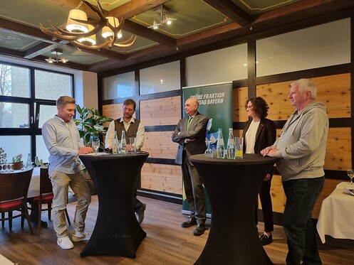 Beim gemeinsamen Mittagstermin mit den Vertretern der Firma Tausendpfund, Geschäftsführer der Handwerkskammer Niederbayern-Oberpfalz Alexander Stahl, dem Regensburger Kreishandwerksmeister Andreas Träg sowie der grünen Stadträtin Dr. Helene Sigloch wurden wichtige Themen der regionalen Handwerkslandschaft diskutiert – darunter Fachkräftegewinnung, Ausbildungsförderung und regionale Rahmenbedingungen für das Handwerk.