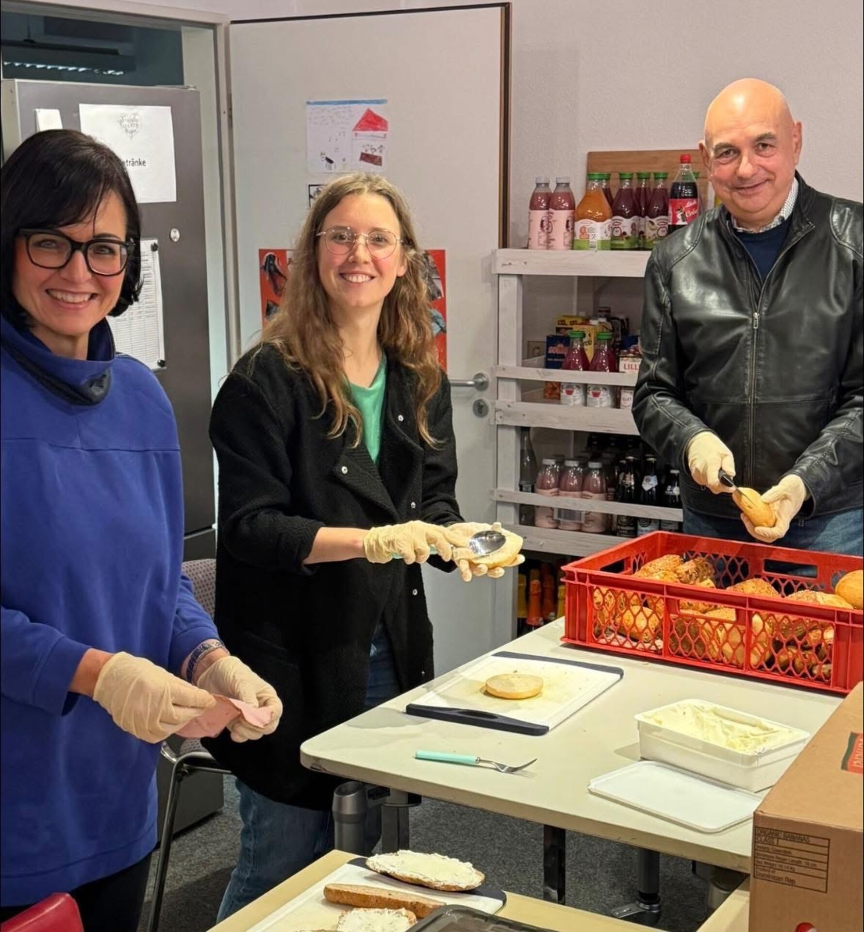 Herzlich ging es zu, als die Stadträte Theresa Eberlein und Jürgen Mistol kürzlich bei den Rengschburger Herzen mitgeholfen haben – Brote geschmiert, Semmeln belegt und diese gemeinsam mit weiteren Lebensmitteln an Bedürftige verteilt.