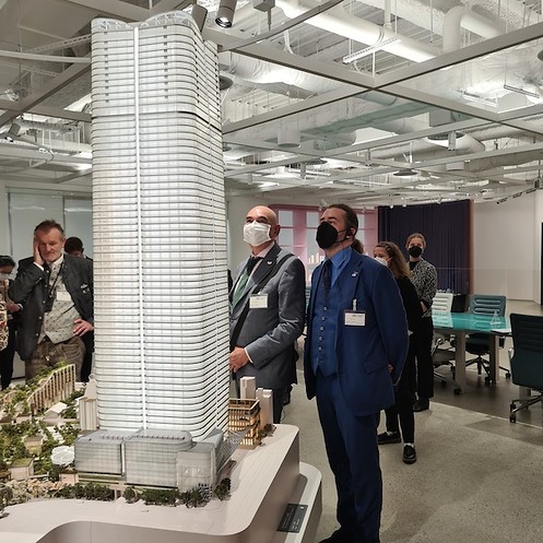 Mit dem ÖPNV ging es zu einer der rund 170 Wasserstofftankstellen in Japan. Der Betreiber Iwatani hat sich zum Ziel gesetzt, eine flächendeckende Versorgungsinfrastruktur für Brennstoffzellenfahrzeuge aufzubauen. Im Anschluss gab es einen Austausch zum Thema Stadtplanung mit drei in Tokio ansässigen deutschen Architekten, die über ihre Erfahrungen und eigenen Perspektiven berichteten. Im Ministerium für Land, Infrastruktur, Verkehr und Tourismus (MLIT) wurde mit Vertreter*innen des Hauses Fragen zu den Themen Wohnraumförderung, Energieeffizienz und Öffentlicher Personennahverkehr erörtert. Zum Abschluss konnten im Mori Building Urban Lab. anhand eines interaktiven Modells von Tokio im Maßstab 1:1000 unterschiedliche Facetten der Stadtentwicklung nachempfunden werden: z.B. die sich verändernde Küsten im Laufe von 120.000 Jahre, die Komplexität des U-Bahn-Netzes oder die prognostizierte Bevölkerungsentwicklung bis 2050. Durch verschiedene Szenarien kann Tokios Vergangenheit, Gegenwart und Zukunft abgebildet werden.