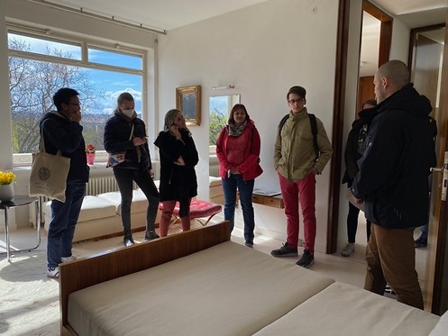 Zusammen besuchten sie eine Ikone der funktionalistischen Architektur, die vom Architekten Ludwig Mies von der Rohe 1929-1930 errichtete Villa Tugendhat, die sich unweit des Brünner Zentrums befindet. Die Villa, die seit 1990 als Museum fungiert und im Eigentum des tschechischen Staats ist, ist ein interessantes Beispiel für die Veränderung in der Architektur hin zum aktuellen Trend des nachhaltigen Bauens. Der Architekten und die auftragsgebenden Familie Tugendhat legten beim damaligen Bau kein Wert auf Dämmung oder Energieeinsparung, was heute längst zum Standard gehört. Die Villa wird auch „gläserne Zimmer“ genannt, weil die Wände, des sich im ersten Stock befindenden und auch fast das ganze Geschoss in Anspruch nehmenden Wohnzimmers, überwiegend aus einer einfachen Schicht Glas angefertigt wurden. Das führt dazu, dass das Haus nur mit einem sehr hohen Kostenaufwand geheizt werden kann, was aber für die Familie in der damaligen Zeit nicht relevant war, da sie über ausreichende finanzielle Mittel verfügte und die Nachhaltigkeit damals kein Thema war.