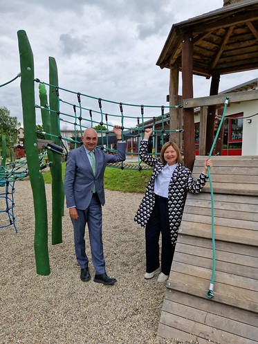 Zur Einweihung des neuen Kindergartens Kneiting entrichtete Jürgen Mistol ein Grußwort, in dem er betonte, dass gute Bildungs- und Zukunftschancen für alle Kinder unabdingbar sind. Denn Kinder seien das wichtigste Gut, das eine Gesellschaft habe, sodass ein entsprechendes Angebot für Eltern und Kinder notwendig sei. Insofern zeigt sich Jürgen Mistol sehr erfreut über das neue Kinderhaus in Pettendorf, das nun einen Ort darstelle, an dem sich die Kinder frei und naturnah entfalten könnten und zudem bestens versorgt seien. Gleichzeitig erkannte Jürgen Mistol an, dass frühkindliche Bildung sowie Betreuung aufgewertet werden müssen, und sprach den anwesenden Betreuer*innen seine Bewunderung aus, dass diese trotz des akuten Fachkräftemangels und teils widriger Rahmenbedingungen optimistisch blieben und mit Herz bei der Sache seien.