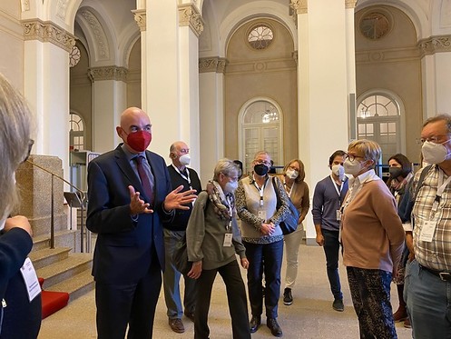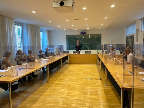 Auf dem Besuchsprogramm standen die Besichtigung des Maximilianeums, eine Diskussionsrunde mit dem Jürgen Mistol sowie die Teilnahme an der Plenarsitzung, allerdings, pandemiebedingt, nur online im Senatssaal. Für die Regensburger Ehrenamtlichen wurde die Landtagsfahrt schon zweimal geplant, erst beim dritten Versuch ist es mit einigen Einschränkungen gelungen.