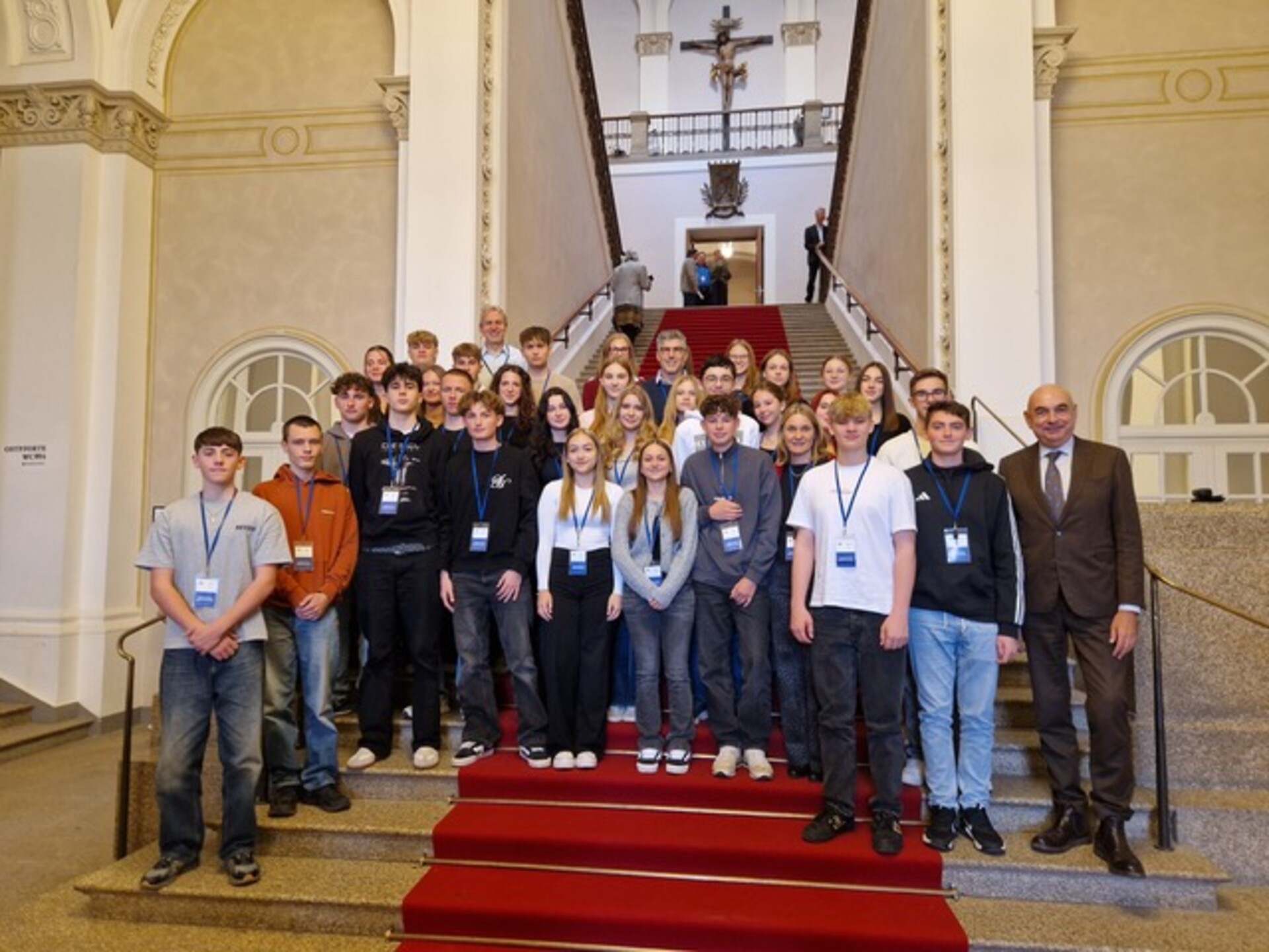 Über 40 Schülerinnen und Schüler besuchten auf Einladung von Jürgen Mistol den Bayerischen Landtag. Dabei wurde ihnen ein spannendes Programm geboten, da sie beim Besuch der Plenarsitzung eine hitzige Debatte im Rahmen einer sehr seltenen dritten Lesung eines Gesetzesentwurfes mitverfolgen durften. Nachdem sie zuvor bereits durch den Besucherfilm des Bayerischen Landtags wichtige Informationen über dessen Arbeit und Gesetzgebungsprozesse erhalten hatten, konnten sie das so erlangte Wissen direkt im Anschluss mit der Realität im Plenarsaal abgleichen.