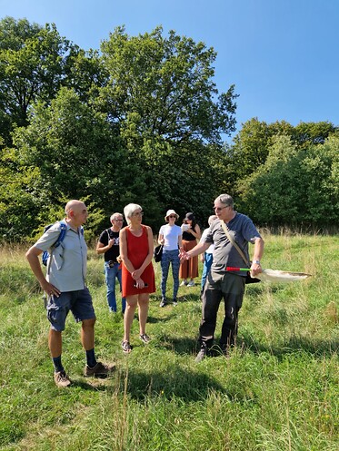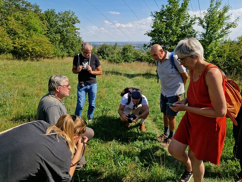 Auf dem Weg durch das NSG fing der Zoologe immer wieder Schmetterlinge ein und referierte über diese. Zugleich dokumentierte er an verschiedenen Orten Schäden in der Flora. Dadurch konnten sich die Anwesenden aus nächster Nähe nicht nur über das NSG informieren, sondern auch mit der Arbeit von Andreas Segerer vertraut machen. Dass diese unabdingbar für die Aufklärung über die Folgen des Artensterbens ist, wurde bereits wenige Meter nach Betreten des NSG klar.