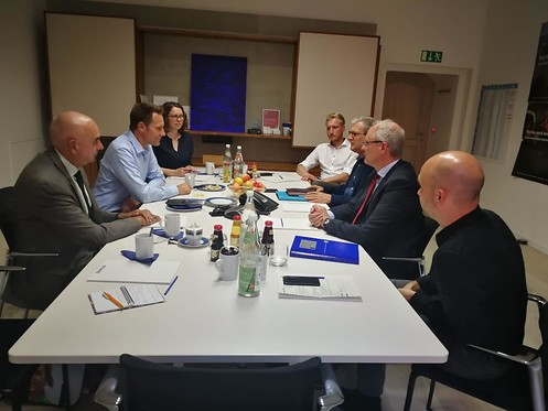 Bei der Firma Ostwind diskutierten Jürgen Mistol, Ludwig Hartmann und Veronika Zeichinger mit Vorstand Bernd Kiermeier, den Unternehmensleitern Stefan Bachmaier und Philip Milek sowie Pressesprecher Christoph Markl-Meider über Maßnahmen, die jetzt für den Ausbau der Windenergie in Bayern notwendig sind.