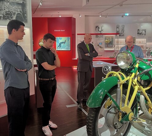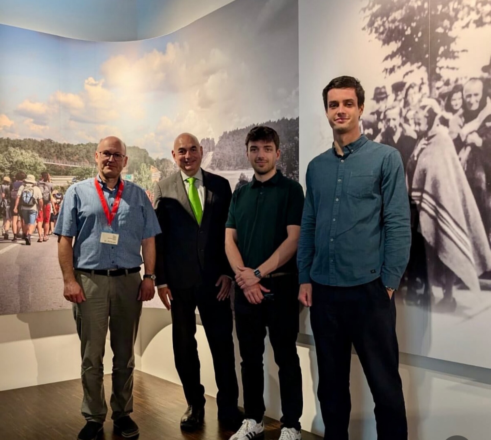 Während ihrer Woche in Jürgen Mistols Büro begleiten Daniel und Matej ihn zu fast allen Terminen. Am Mittwochmorgen waren sie bei einer Führung durch das Sueddeutsche Museum in München dabei. Die lehrreiche Führung wurde von Dr. Raimund Paleczek geleitet. Er gab fachkundige Einblicke in die kulturelle, religiöse und wirtschaftliche Geschichte der deutschen Bevölkerung in den Regionen Böhmen, Mähren und Sudeten-Schlesien vor 1945. Anschließend befasste er sich mit den Themen Flucht und Vertreibung, denen diese Bevölkerungsgruppen nach dem Zweiten Weltkrieg ausgesetzt waren.