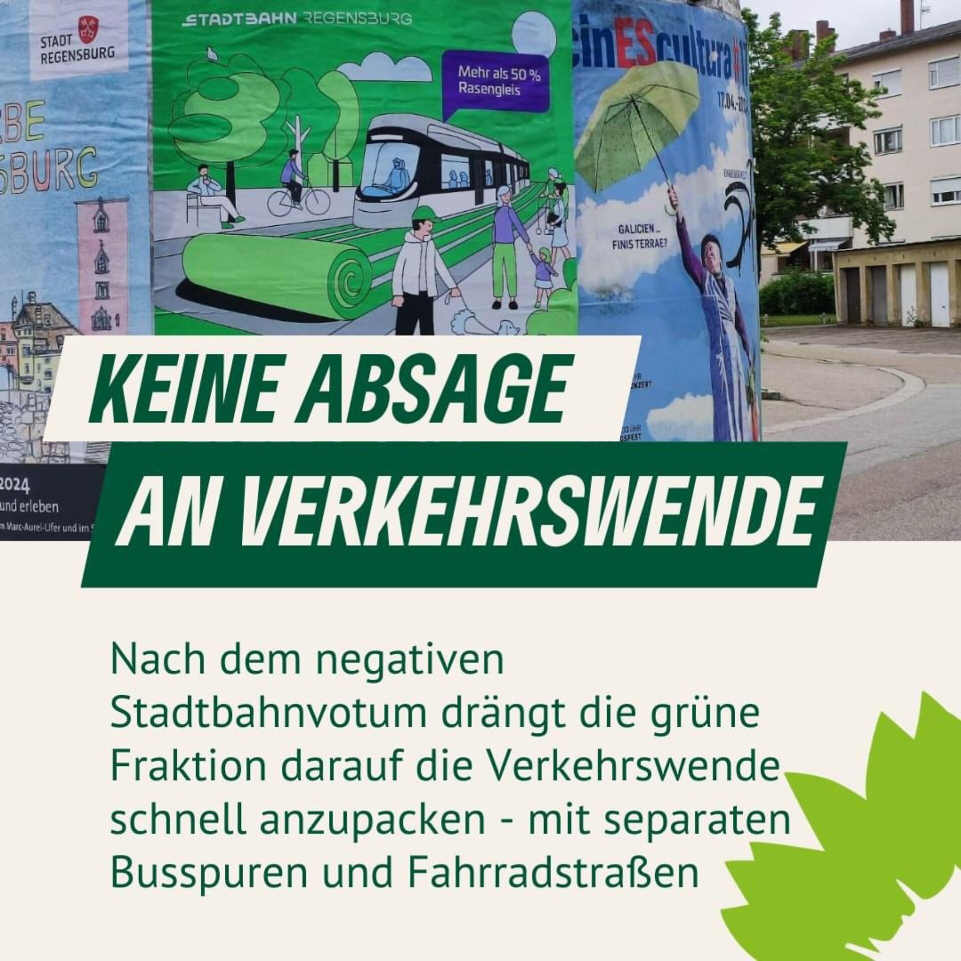 Die grüne Fraktion zeigt sich ob des Ausgangs des Bürgerentscheids über die weiteren Planungen einer Regensburger Stadtbahn enttäuscht, hält die Forderung nach einer dringend notwendigen Verkehrswende aber aufrecht.