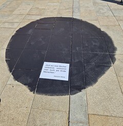 Neben einem von den Künstlern Wolfram Kastner und Hans Wallner aufgemalten schwarzen Fleck, der die Brandspuren der verbrannten Bücher symbolisiert, rezitierte Jürgen Mistol