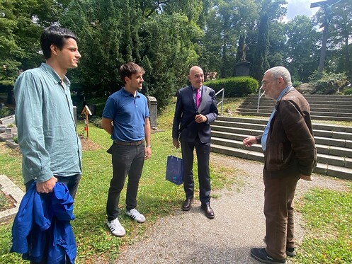 Auf dem Weg zwischen Universität und Altstadt kam es zu einem zufälligen Treffen mit dem ehemaligen Regensburger Oberbürgermeister Walter Annuß, der früher als Lektor für Tschechisch tätig war. Es entspann sich ein kurzes Gespräch – natürlich auf fließendem Tschechisch.