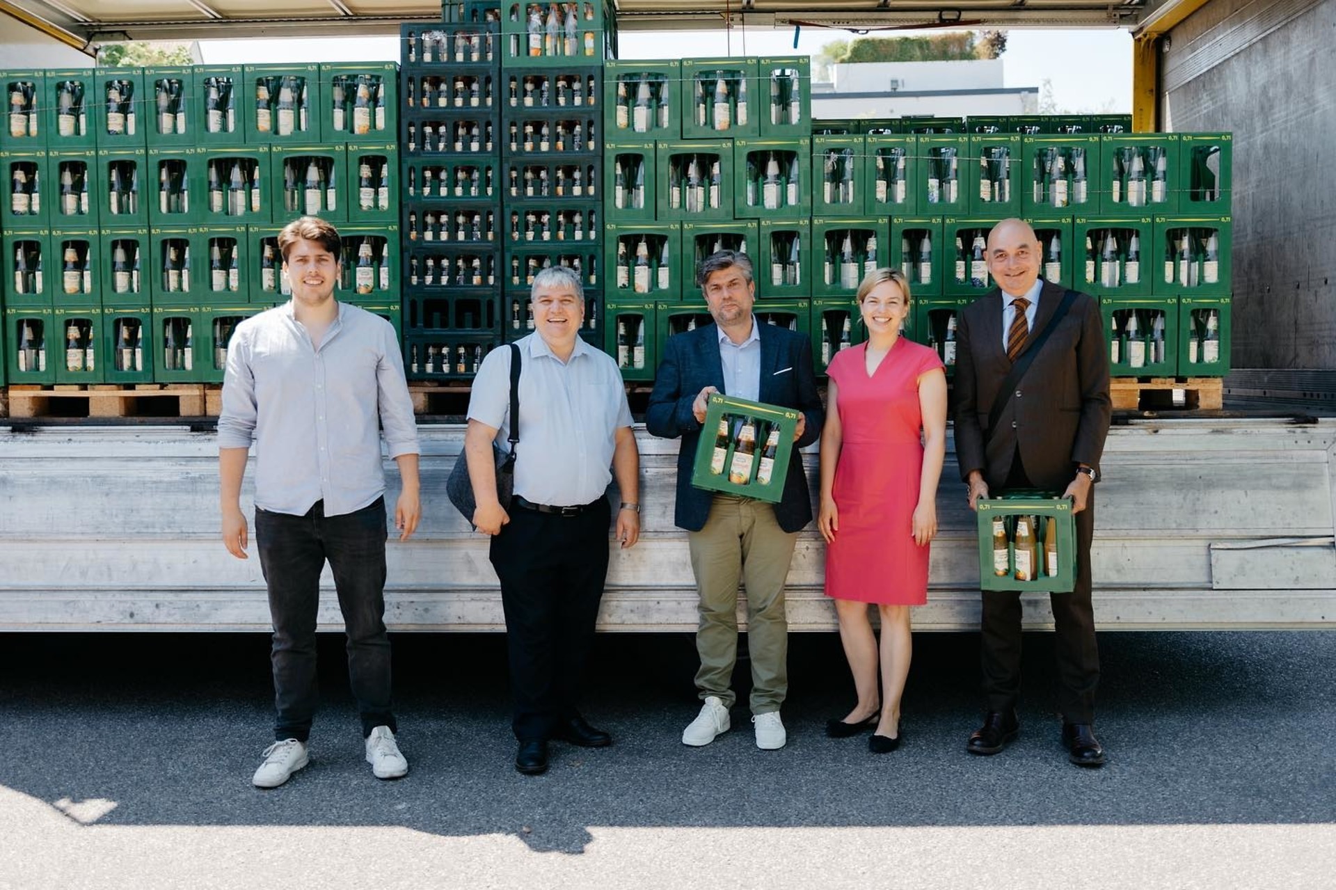Gestartet ist der Tag mit Katharina Schulze in Regensburg mit einem „erfrischendem“ Besuch bei der Kelterei Nagler. Erst vor ungefähr 100 Jahren wurde ein Verfahren erfunden, mit dem man Fruchtsäfte über Monate haltbar machen kann. In den Jahrhunderten zuvor gab es diese gesunden Säfte ausschließlich während der Erntemonate. Heutzutage sind Fruchtsäfte aus unserem Alltag gar nicht mehr wegzudenken! Gemeinsam mit Stefan Schmidt, MdB, und Jürgen Mistol erfuhr Katharina Schulze bei der Kelterei Nagler mehr über das Handwerk des Fruchtsaftmachens. Es war schön zu sehen, wie das Familienunternehmen Nachhaltigkeit lebt. Die Früchte für den Saft kommen von Streuobstwiesen aus der Region. Besonders beeindruckend war, dass die Kelterei Nagler seit 2019 klimaneutral produziert. Bei unserem Gespräch haben die Abgeordneten auch über die Wasserknappheit gesprochen. Für die Kelterei ist Wassersicherung entscheidend. Wir müssen in Bayern mehr tun, um unser blaues Gold zu schützen. Als Grüne schlagen wir ein Bündel an Maßnahmen zur Sicherung unseres Trinkwassers vor. Wichtig ist, jetzt zu beginnen!