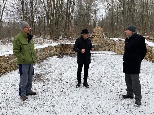 Jürgen Mistol besuchte im bayerisch-tschechischem Grenzgebiet das "versunkene Dorf" Grafenried. Er traf dort den ersten Bürgermeister Waldmünchens und Vorsitzenden der Aktionbündnis Čerchov, Marcus Ackermann, den grünen Waldmünchener Stadtrat Sebastian Karl und den grünen Kreisrat Michael Doblinger. Anlass des Besuchs war nicht nur das Interesse des Abgeordneten als Koordinator für die Zusammenarbeit des Bayerischen Landtags mit der Abgeordnetenkammer des Parlaments der Tschechischen Republik, sondern auch seine Spende für den Lehrpfad Grafenried. Alle bayerischen Abgeordneten haben 2020 eine Erhöhung der Diäten bekommen, die Grünen Fraktion hat sich entschieden, dass sie diese Erhöhung spendet. Für Jürgen Mistol sind bayerisch-tschechische Zusammenarbeit und die grenzüberschreitenden Projekte eine Herzensangelegenheit. Grafenried ist in dieser Hinsicht ein vorbildliches Projekt und ein anschauliches Beispiel für die Zusammenarbeit.