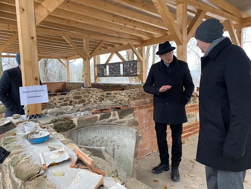 Der neu errichtet Erinnerungsort muss aber gepflegt und Instand gehalten werden. Die Finanzierung dafür ist schwierig. Daher freuten sich die Beteiligten sehr über die Spende Herrn Mistols, welche nach ihren Worten einen guten Beitrag leistet, um den Ort instand zuhalten für die Besucherinnen und Besucher. Jürgen Mistol half gerne und spendete 2544 Euro an Aktionsbündnis Čerchov. Zusammen mit dem Anwesenden hofft er auf Fortführung der interregionalen Zusammenarbeit von Tschechien und Deutschland sowie darauf, dass es gelingt, die Bevölkerung schrittweise, unter anderen durch solche Projekte, trotz der Sprachbarriere näher zusammenzubringen. Durch die Grenzschließung im letzten Jahr ist die gute Nachbarschaft und das Beisammensein schwieriger geworden, aber alle arbeiten fleißig auf den unterschiedlichen Ebenen und Orten daran, dass es wieder besser wird.