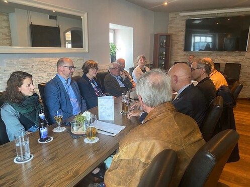Furth im Wald – Knapp 30 Minuten mit dem Fahrrad von der bayerisch-tschechischen Grenze entfernt, doch bis zum Fall des Eisernen Vorhangs mit dem Nachbarland kaum verbunden. 30 Jahre danach ist die Situation ganz anders – es gibt gemeinsame Projekte, Ausstellungen, Menschen von beiden Seiten der Grenze aller Alterskategorien begegnen sich auf alltäglicher Basis. Hier traf sich Jürgen Mistol mit denen, die an der bayerisch-tschechischen Nachbarschaft professionell und/oder privat interessiert sind, zu einem Stammtisch. Gekommen ist u. a. der Leiter des BRK Cham Manfred Aschenbrenner, die langjährige Tschechisch-Lehrerin Jaroslava Seidlmayer, der Stadtarchivar Werner Perlinger und Vertreter des „Freundeskreis Furth im Wald-Domažlice“. Man setzte sich in einer lockeren Atmosphäre zusammen und tauschte sich über Themen aus, die das alltägliche Leben auf der Grenze betreffen.