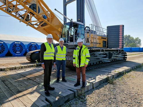 Im Anschluss erhielt Jürgen Mistol eine Führung über das Kabellager für SüdOstLink im Regensburger Hafen durch Josef Knothe von Prysmian, dem Produzenten der Kabel. Mittlerweile seien hier mehr als 200 Kabeltrommeln gelagert. Die bis zu 90 Tonnen schweren Trommeln würden mit Infrarotkameras sowie GPS-Trackern überwacht, um Vandalismus und Diebstahl von Kabelteilen zu verhindern. Mit einer Lebensdauer von über 70 Jahren erweisen sich die Kabel nicht nur als Leiter von umweltfreundlicher Energie, sondern auch selbst als nachhaltig, zumal die Kabeltrommeln und die Bestandteile der Kabel recycelt werden können.