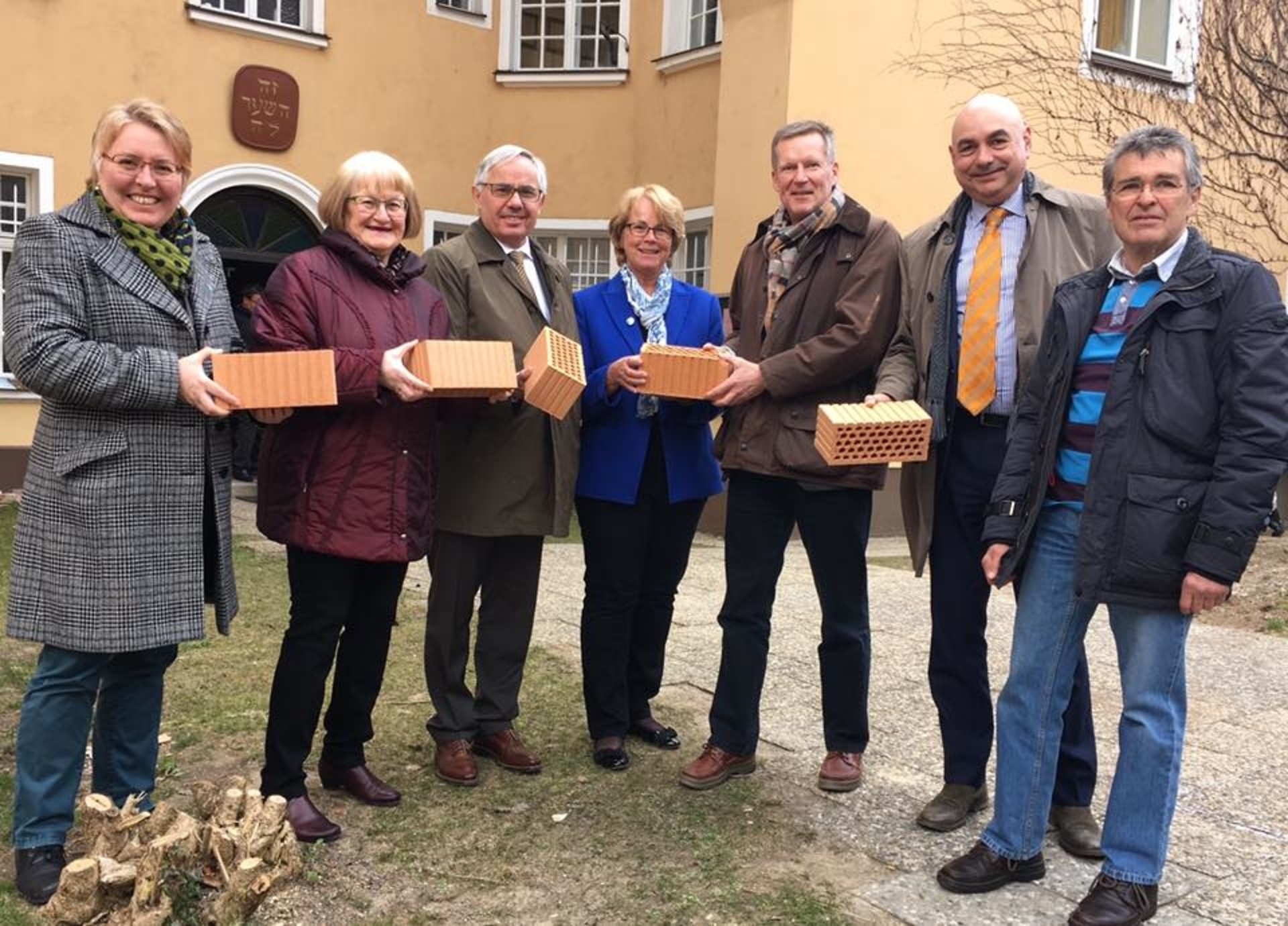 Die Mitglieder der Stadtratsfraktion Bündnis 90/Die Grünen Regensburg, Fraktionsvorsitzende Margit Kunc, Bürgermeister Jürgen Huber und die StadträtInnen Jürgen Mistol MdL, Maria Simon und Walter Erhard haben sich an der Spendenaktion zum Bau der Neuen Synagoge beteiligt und symbolisch Ziegelsteine an Ilse Danziger, Vorsitzende der Jüdischen Gemeinde Regensburg und Dieter Weber, Vorsitzender des Fördervereins Neue Synagoge Regensburg e.V. übergeben.