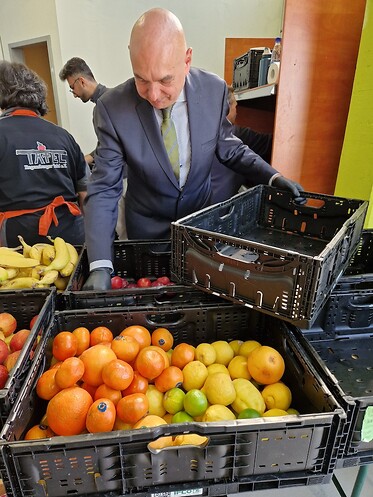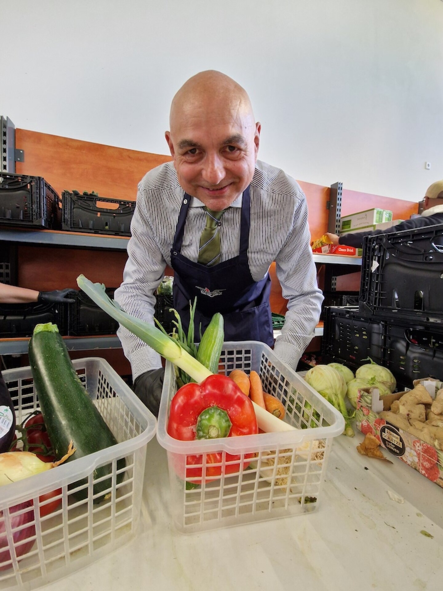 Nach einer Führung durch den Ausgabebereich sortierte Jürgen Mistol angeliefertes Obst. Innerhalb von 20 Minuten mussten mehrere Kisten für die Ausgabe vorbereitet werden. Während der anschließenden Verteilung der Lebensmittel, hatte Jürgen Mistol an der Gemüsestation alle Hände voll zu tun. Neben der Ausgabe an die Abholer*innen mussten immer wieder Pakete aus verschiedenen Gemüsesorten zusammengestellt werden, um eine schnelle Abholung zu gewährleisten. Am Ende einer anstrengenden Schicht bewunderte Jürgen Mistol das Engagement, die koordinierte Zusammenarbeit sowie die Mühe aller Ehrenamtlichen, trotz widriger Bedingungen den Abholer*innen ein möglichst breites, gesundes und vor allem ausreichendes Angebot zur Verfügung zu stellen.