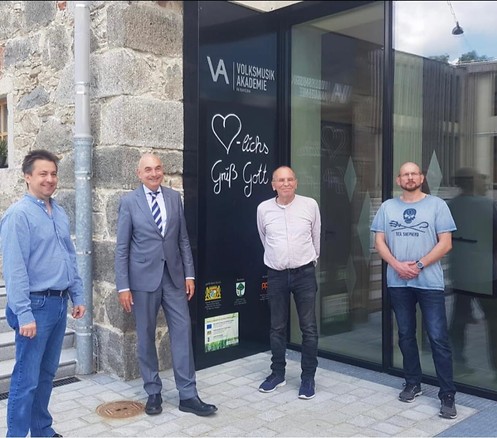 Jürgen Mistol besuchte die Stadt Freyung auf Einladung Heinz Langs, Grüner zweiter Bürgermeister, und Hans Madl-Deinharts, Grünes Kreisvorstandsmitglied. Die beiden führten ihn durch die Stadt und zeigten ihm vor allem Beispiele für den Umgang mit ehemaligem Leerstand. So dient nun ein Haus, das kurz vor dem Abriss stand, als Unterkunft für Geflüchtete und zeitweises Impfzentrum. Ebenso wurden mehrere Häuser zum jetzigen Stadtplatzcenter samt Kino, Buchladen und verschiedenen Einkaufsmöglichkeiten verbunden. Besonders beeindruckend war die Volksmusikakademie, welche aus Initiative des Bürgermeisters zur Stärkung des Stadtkerns heraus konzipiert wurde und neben professionellen Probe- und akustisch ausgeklügelten Konzerträumen auch Übernachtungsmöglichkeiten für Schüler*innen sowie Gäste von Veranstaltungen bietet.Für die Akademie wurde ein altes Brauereigebäudenachhaltig renoviert, wobei der Kern des Pferdestalls erhalten blieb und dieser sowie das restliche Haus innen und außen mit Weißtannenholz versehen wurden, sodass ein fließender Übergang aus traditionellen Elementen und moderner Architektur erkennbar wird. Nach einer Mittagspause und dem Ende der Stadtführung überreichte Heinz Lang Jürgen Mistol ein Buch über den Bayerischen Wald als Andenken an den Besuch.