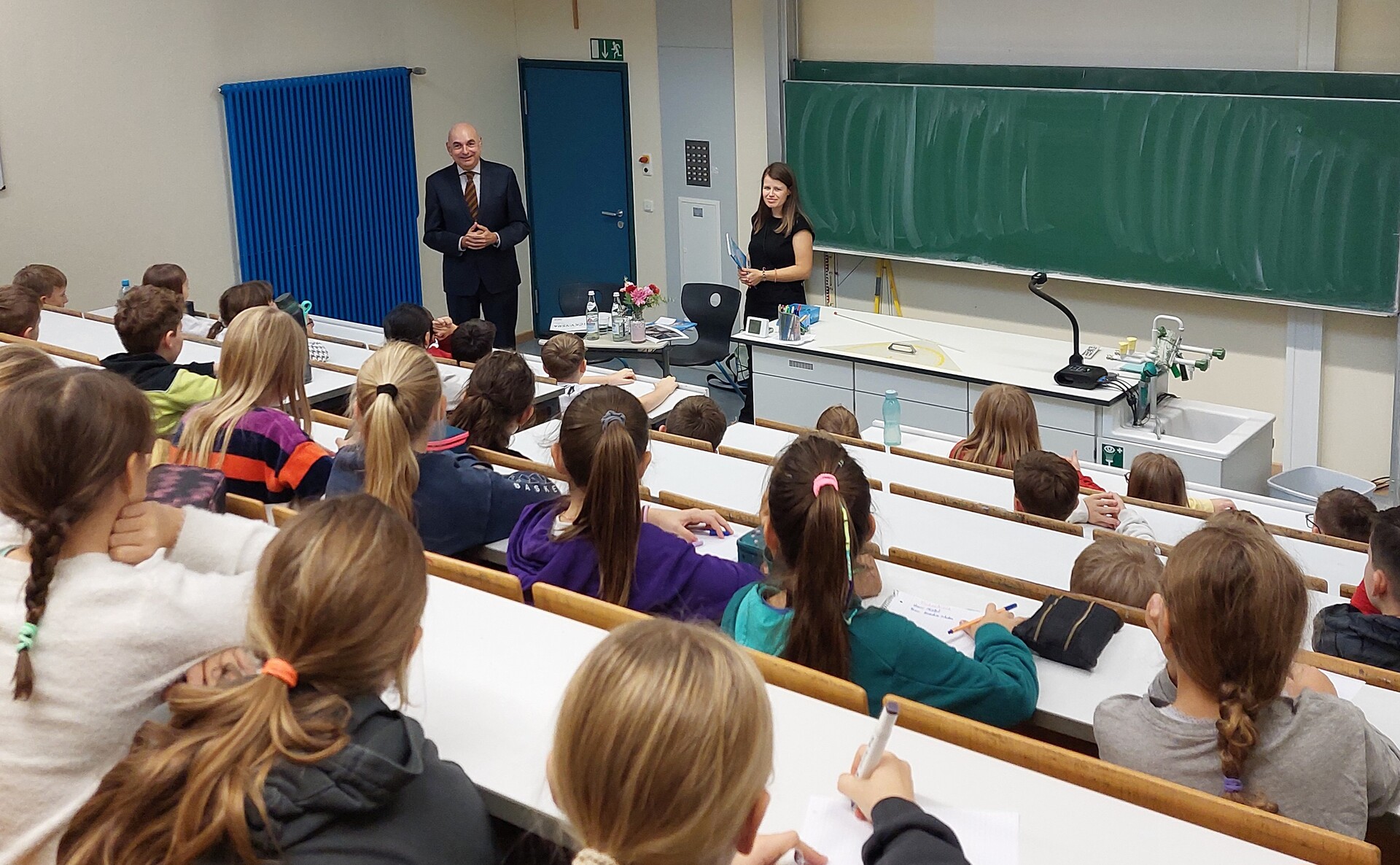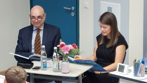 Konrektorin Dr. Svenja Meindl zitierte zu Beginn der Lesung den Spruch ‚Wer in der Zukunft lesen will, muss in der Vergangenheit blättern‘ von André Malraux. Dem stimmte Jürgen Mistol voll und ganz zu und machte auf das Motto des diesjährigen Vorlesetags ‚Vorlesen schafft Zukunft‘ aufmerksam. „Besonders gefällt mir an dem Buch, dass es Orientierung gibt, wie auch in schwierigen Zeiten ein gutes Zusammenleben funktionieren kann. Und zwar, indem wir unsere Mitmenschen im Blick behalten, anderen helfen, wenn es nötig ist, einfach füreinander da sind“, so der Grünen-Politiker.