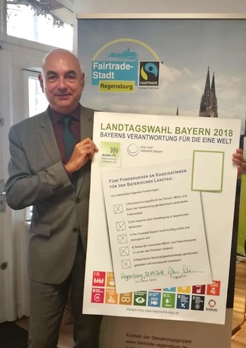 Jürgen Mistol wünscht sich angesichts der dramatischen Hintergründe eine ernsthaftere Debatte um das Thema fairen Handel im bayerischen Landtag, sowie im Europaausschuss. Die Kampagne des Bund Naturschutz und Eine-Welt-Netzwerk Bayern mit ihren fünf Forderungen zu fairem Handel und Umweltschutz erfährt von allen Teilnehmer*Innen der Gesprächsrunde Unterstützung.