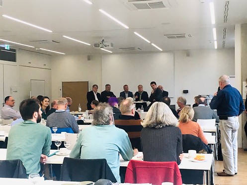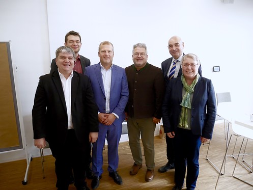 Über den gegenwärtigen Zustand des Verkehrsträgers Schiene, aktuelle Vorhaben in unserer Region und Aussichten für die Zukunft diskutierten Jürgen Mistol und Stefan Schmidt mit Matthias Trykowski, DB Netz AG, Leiter Portfolio Nordbayern, Ministerialrat Stefan Schell, Abteilung für Schienen- und Luftverkehr, Bayerisches Staatsministerium für Wohnen, Bau und Verkehr, und Lukas Iffländer, Stellvertretender Bundesvorsitzender, Fahrgastverband Pro Bahn.