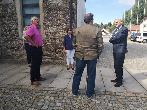 Das Centrum Bavaria Bohemia hat ein neues Schwerpunktprojekt zum Thema „Grünes Band“, das war Anlass für Jürgen Mistol mal wieder in Schönsee vorbeizuschauen. Die Leiterin des Centrums, Dr. Veronika Hofinger, informierte über die Facetten und die geplanten Projekte zum Thema „Grünes Band“. Eng arbeitet sie dabei mit dem Bürgermeister der Stadt Schönsee, Reinhard Kreuzer, und sein Stellvertreter, Andreas Hopfner zusammen, die auch am Informationsgespräch teilnahmen. Zuerst stand der Besuch der Sommerausstellung, die auch dem Thema „Grünes Band“ gewidmet ist, auf dem Programm. Die Fotoausstellung zu Landschaft und Historie des „Grünen Bands“ ist im Erdgeschoss des Gebäudes und im Internet zu sehen. Und wird zukünftig als Wanderausstellung auf Reisen gehen, die nächste Stadion ist das Museum in Stadlern.