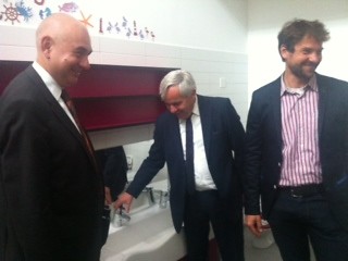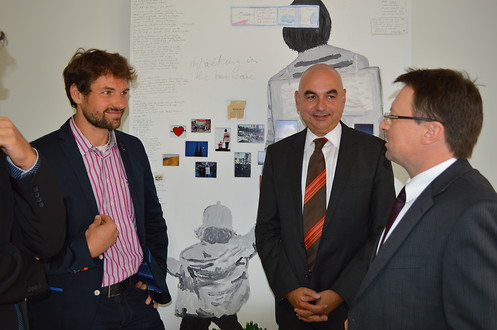 Gemeinsam mit Jürgen Huber, dem grünen Bürgermeister von Regensburg, besuchten Martin Stümpfig und Jürgen Mistol das Kinderhaus in der Naabstraße. Ein Vorzeigeobjekt, so Jürgen Huber, aber nicht nur weil die Energiebilanz des Hauses stimmt, es handelt sich um ein Null-Energiehaus, sondern vor allem weil sich alle hier wohl fühlen. Zuallererst die Kinder und natürlich auch die Erzieherinnen und die Eltern. Die Begeisterung für dieses neu erbaute Kinderhaus teilt auch Jürgen Huber und nach diesem Besuch natürlich auch Jürgen Mistol und Martin Stümpfig. Und zu recht, das Energiekonzept des Kinderhauses kann sich sehen lassen. So sehen moderne Gebäude der Zukunft aus, ist die einhellige Meinung der grünen Politiker. Es entspricht den Passivhausstandarts, das heißt, Energieverluste durch den Luftwechsel und die Gebäudehülle werden minimiert und passive solare Energie wird gewonnen und gespeichert. Zusammen mit einer energiesparenden Lüftungstechnik mit bis zu 90 Prozent an Wärmerückgewinnung, einer Wärmepumpe, die mittels Erdkollektoren die Erdwärme nutzt, sowie einer Photovoltaikanlage auf dem Flachdach wird der energetische Standart eines Nullenergiehauses erreicht, das klimneutral betrieben werden kann.