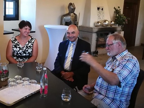 Die Teilnehmer*Innen der Burgbesichtigung fanden sich anschließend zu einer Gesprächsrunde mit Burgmanagerin Theresa Fischer im Rittersaal der Burg ein. Sie gibt Auskunft über den Veranstaltungsbetrieb in den Festsälen und dem neu gebauten Tagungszentrum. Diese sind Seminare der Rotarier, Geburtstage und Hochzeiten, Trauungen sind in der Burgkapelle möglich. 8 Gästezimmer sind in der Burg verfügbar, weitere Übernachtungsmöglichkeiten bietet das Kloster Waldsassen. Der Betrieb auf der Burg ist in den Sommermonaten jedes Wochenende ausgebucht, im Winter weniger. 25 Mitarbeiter sind an der Burg beschäftigt, um die Veranstaltungen zu koordinieren und umzusetzen.