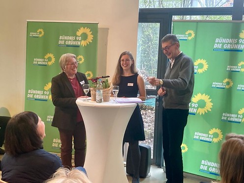 Diese Themen griff auch die Vizepräsidentin des Bundestags, Katrin Göring-Eckardt, in ihrer Keynote auf und betonte, dass die Klimakrise nur von der gesamten Gesellschaft angepackt werden kann. Dafür dürfe man den Menschen auch mehr zutrauen, weil trotz vieler „aber“, die Kritiker*innen Grünen Positionen gerne entgegenhalten, jetzt Handlungsbedarf bestehe, da ansonsten die Klimakrise zu noch größerer sozialer Spaltung führen werde. Darüber hinaus wirke sich die Klimakrise auf alle Bereiche der Gesellschaft aus, weswegen es auch in der Wirtschaft Veränderung brauche, damit der Handlungsspielraum, der momentan noch bestehe, nicht noch geringer werde. Zudem sei es mit Blick auf Handelspartner wie China notwendig, einseitige Abhängigkeiten zu reduzieren, sodass auch vor diesem Hintergrund die Abschaltung der letzten aktiven Atomkraftwerke in Deutschland am 15. April aus Katrin Göring-Eckardts Sicht ein guter Tag sei. Denn abgesehen davon, dass die Endlagerfrage noch immer nicht geklärt sei, kämen die meisten Brennstäbe aus Russland. Am Ende ihrer Rede verwies die Bundestagsabgeordnete auf die Verpflichtung aller Regierungsmitglieder: Schaden von der Bevölkerung abzuwehren und deren Nutzen zu mehren. Gerade mit Blick auf den Klimaschutz sei dies im Bund, aber auch in Bayern, lange Zeit versäumt worden, weshalb es umso wichtiger sei, dass nun endlich auch Bayern eine gute Regierung mit Grüner Beteiligung bekomme, die diesen Auftrag wieder ernst nehme.