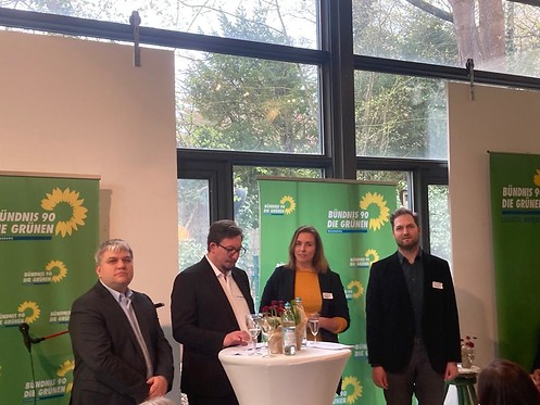 Die beiden folgenden Diskussionsrunden machten deutlich, dass Veränderung zum Positiven möglich ist, sobald die Grünen Verantwortung tragen. Georg Haber, Präsident der Handwerkskammer Niederbayern-Oberpfalz, befand, dass er sich als einziges handwerkliches Mitglied im Mittelstandsbeirat der Bundesregierung erst unter Wirtschaftsminister Robert Habeck ernstgenommen gefühlt hatte. Maria Simon unterstrich dabei, dass dem Handwerk bei der Realisierung der vor uns stehenden Aufgaben eine besondere Rolle zukommt, woraufhin Georg Haber feststellte: „Der handwerkliche Boden ist nicht nur golden, sondern auch grün!“ Auch Clemens Reichel, technischer Leiter der Windpower GmbH, merkte mit Blick auf den Ausbau der Erneuerbaren Energien an, dass die neuen Gesetze der Ampel gut sind und es schön ist, dass eine Regierung endlich rechtliche Rahmenbedingungen für die Energiewende schafft. Denn die vergangenen Legislaturperioden seien in dieser Hinsicht verloren gewesen. Selbes gelte vor allem auch (noch) in Bayern.