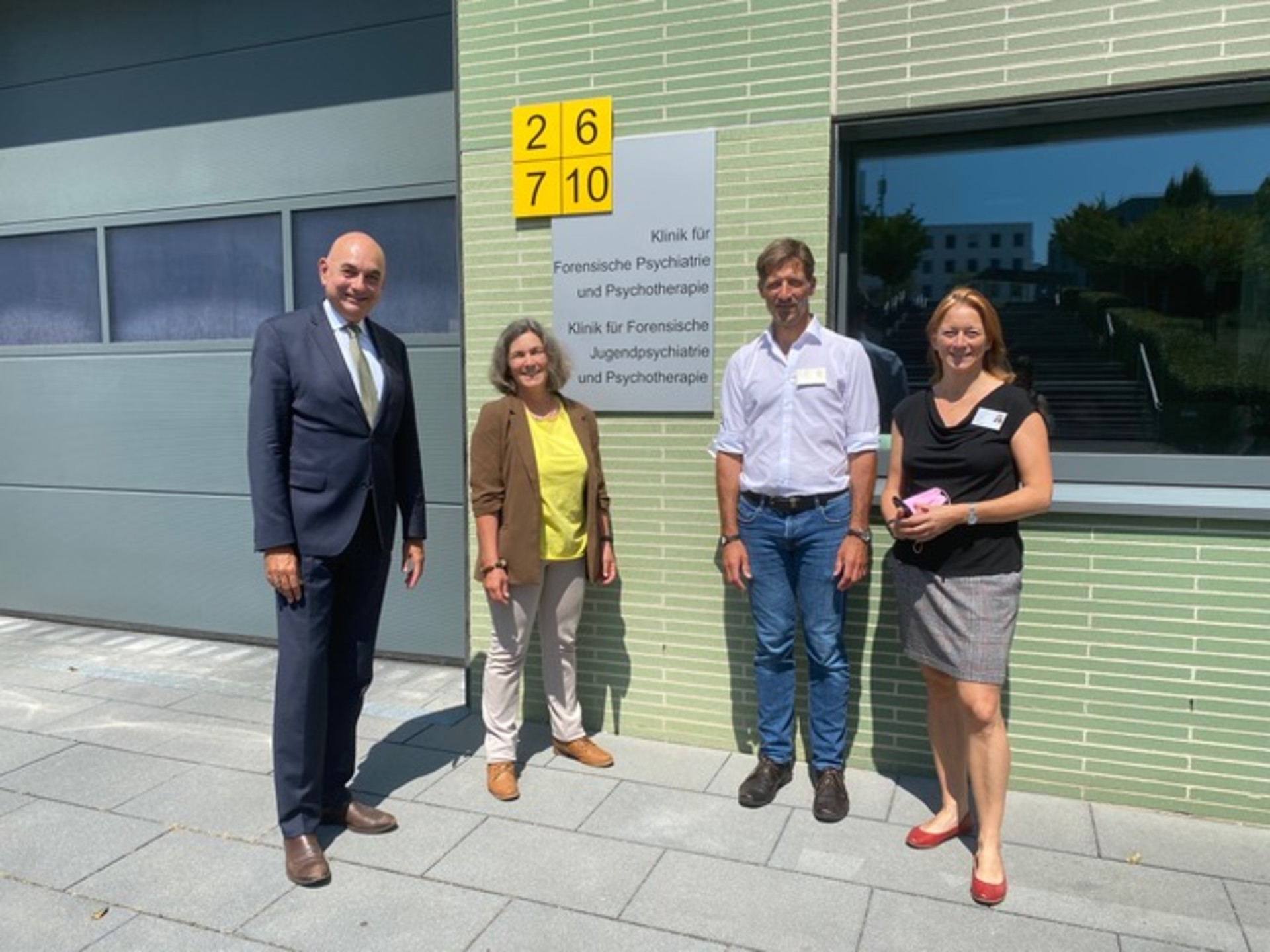 Jürgen Mistol besucht gemeinsam mit seiner Fraktionskollegin, der sozialpolitischen Sprecherin Kerstin Celina, die Jugendforensik der MedBo in Regensburg. Empfangen wurden sie durch Dr. Schlögl, dem ärztlichen Direktor und Dr. Ticks, der leitenden Oberärztin, sowie Christian Hartl, dem Psychotherapeuten der Jugendforensik.