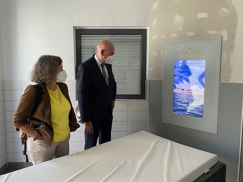 Da über die Forensik in ihrer Gesamtheit und über die Jugendforensik im Besonderem sehr unterschiedliche Vorstellungen herrschen, hatten die beiden Abgeordneten die Gelegenheit sich selbst über die 2017 errichtete Abteilung des Bezirksklinikums zu informieren. Die Jugendforensik in Regensburg ist konzeptuell einzigartig und bietet den Patient*innen, die durch alle Raster gefallen sind und die zum Teil höchste Strafen vom Gericht bekommen haben, eine Möglichkeit zur Reintegration in die Gesellschaft. Sie bekommen hier verbindliche Angebote, die Haft und die Behandlung zu beenden, sowie Hilfe bei der anschließenden Eingliederung in das Leben nach dem Ablauf der Strafe.