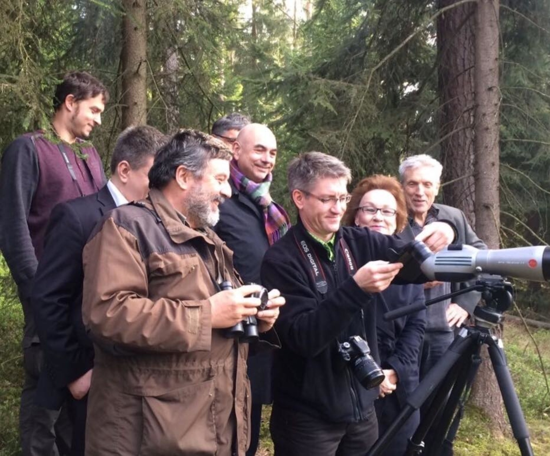 Ein weiterer Schwerpunkt des Besuchs war der Arten- und Biotopschutz auf dem Gelände, denn 75 Prozent der Fläche in Grafenwöhr sind FFH-Gebiet. In enger Zusammenarbeit mit dem Bundesforst, der für das Gebiet zuständig ist, konnten auf dem Gelände seltene Tier- und Pflanzenarten erhalten bzw. wieder angesiedelt werden. Zwar sind die Abgeordneten keinem der beiden hier lebenden Wölfe begegnet, aber einen seltenen Seeadler konnten sie brütenden in seinem Horst beobachten. Für Christian Magerl, als passioniertem Vogelkundler, war das selbstverständlich das Highlight der Exkursion, noch nie zuvor hat er brütende Seeadler in Bayern gesehen.