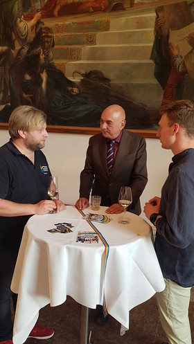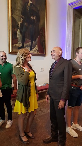 Vor allem aber das veraltete und rückwärtsgewandte Transsexuellengesetz solle spätestens Anfang nächsten Jahres durch das Selbstbestimmungsgesetz ersetzt werden. Denn in Deutschland herrsche kein Erkenntnis- sondern ein Akzeptanzproblem. Trotz aller Fortschritte auf nationaler Ebene sieht Tessa Ganserer auch in Demokratien einen besorgniserregenden Trend, dass Evangelikale, Ultraorthodoxe und Rechtsradikale immer häufiger in queeren Menschen ihre neuen Feinde ausmachen. Daher sei es wichtig, diesen Kräften keine Bühne zu bieten und entschieden gegen sie einzutreten. Bevor sich die Anwesenden bei Buffet und Wein in den Arcaden des Landtags austauschen konnten, beschloss eine Podiumsdiskussion mit der queeren ehemaligen Religionslehrerin Marika Gruber und Michael Brinkschröder, queerer Soziologe und Religionslehrer, zum Thema Outing bei der katholischen Kirche den offiziellen Teil des Abends.