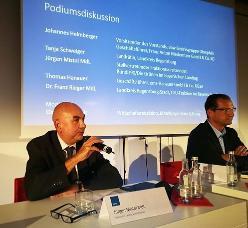 Am Podium fragte Claudia Bockholt den Fabrikinhaber Thomas Hanauer, mit welchen Methoden Unternehmen Fachkräfte locken und binden könnten, Frau Schweiger durfte auf den Breitbandausbau des Mobilfunknetzes eingehen. Jürgen Mistol erläuterte die Unternehmerfreundlichkeit der Grünen und die Verträglichkeit von Wirtschaft und Eindämmung des Flächenfraß. Dr. Franz Rieger musste erklären, warum seit der Verkehrskonferenz 2006 nichts passiert ist. Die Wortmeldungen aus dem Publikum drehten sich um die Frage, wie eine Energiewende anzupacken ist, worüber ausführlich diskutiert wurde.