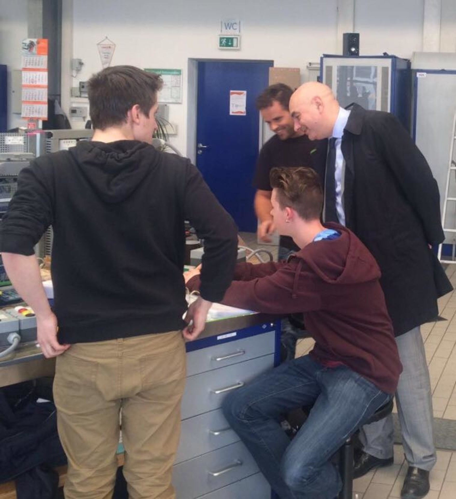 Das ÜBZO (Überbetriebliches Bildungszentrum in Ostbayern) sieht sich als kompetenten Bildungspartner für ein breites Klientel, das sich aus den Mitarbeitern der nahezu 240 Partnerbetriebe in der Region und überregional, privaten Interessenten und Arbeitssuchenden zusammensetzt. Für diese Personengruppen bieten sie ein breit gestreutes Weiterbildungsspektrum in den Bereichen kaufmännische Kurse, IT, Elektronik und Metall, sowie allgemein im gewerblich-technischen Feld. Bei der Entwicklung der Bildungsangebote berücksichtigen sie neben dem SGB III, die Bildungszielplanung der Agentur für Arbeit sowie die Anfragen der Partnerbetriebe. Mit dem Maßnahmenangebot verfolgen sie das Ziel, die berufliche Qualifikation der Kursteilnehmer so zu verbessern, dass ihnen die Wiedereingliederung in den Arbeitsmarkt erleichtert wird, bzw. dass sie die Anforderungen ihrer Stelle erfüllen können und ihnen somit ihr Arbeitsplatz erhalten bleibt. Dabei nutzen sie gezielt die Kontakte innerhalb ihres breitgefächerten Kooperationsnetzwerks (Partnerbetriebe, Agentur für Arbeit/Jobcenter, Industrie und Handelskammern, etc.), um den Kursteilnehmern/-innen ein Praktikum bzw. eine Anstellung zu vermitteln. Im Mittelpukt des Besuches der Fa. BHS Corrugated und des ÜBZO (Überbetriebliches Bildungszentrum in Ostbayern) stand die Frage: Wie schaffen wir es, Flüchtlinge schnell und erfolgreich in den Arbeitsmarkt zu integrieren? Im Gespräch mit dem Geschäftsleiter des ÜBZO , Reinhold Hautmann wurde ein sehr vielversprechendes praxisnahes Konzept zur Integration von Flüchtlingen in den Arbeitsmarkt vorgestellt, von dem man nur hoffen kann, dass es bald in der Praxis umgesetzt wird.